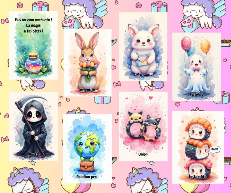 - **La Mission dans les Nuages** : **44 cartes** dédiées à la **carrière et aux ambitions professionnelles**, accompagnées par l’énergique et perspicace** Nuyokai**.