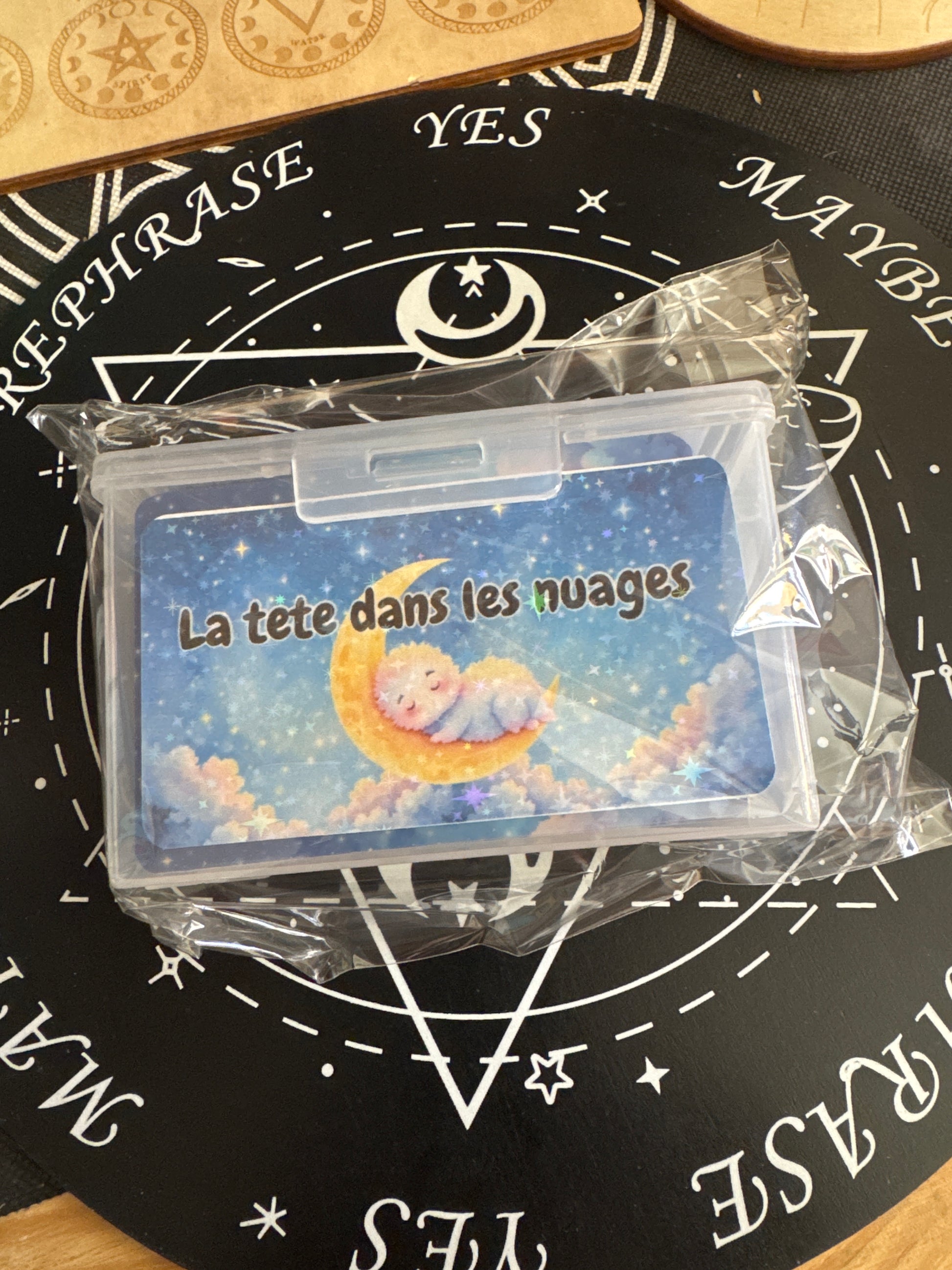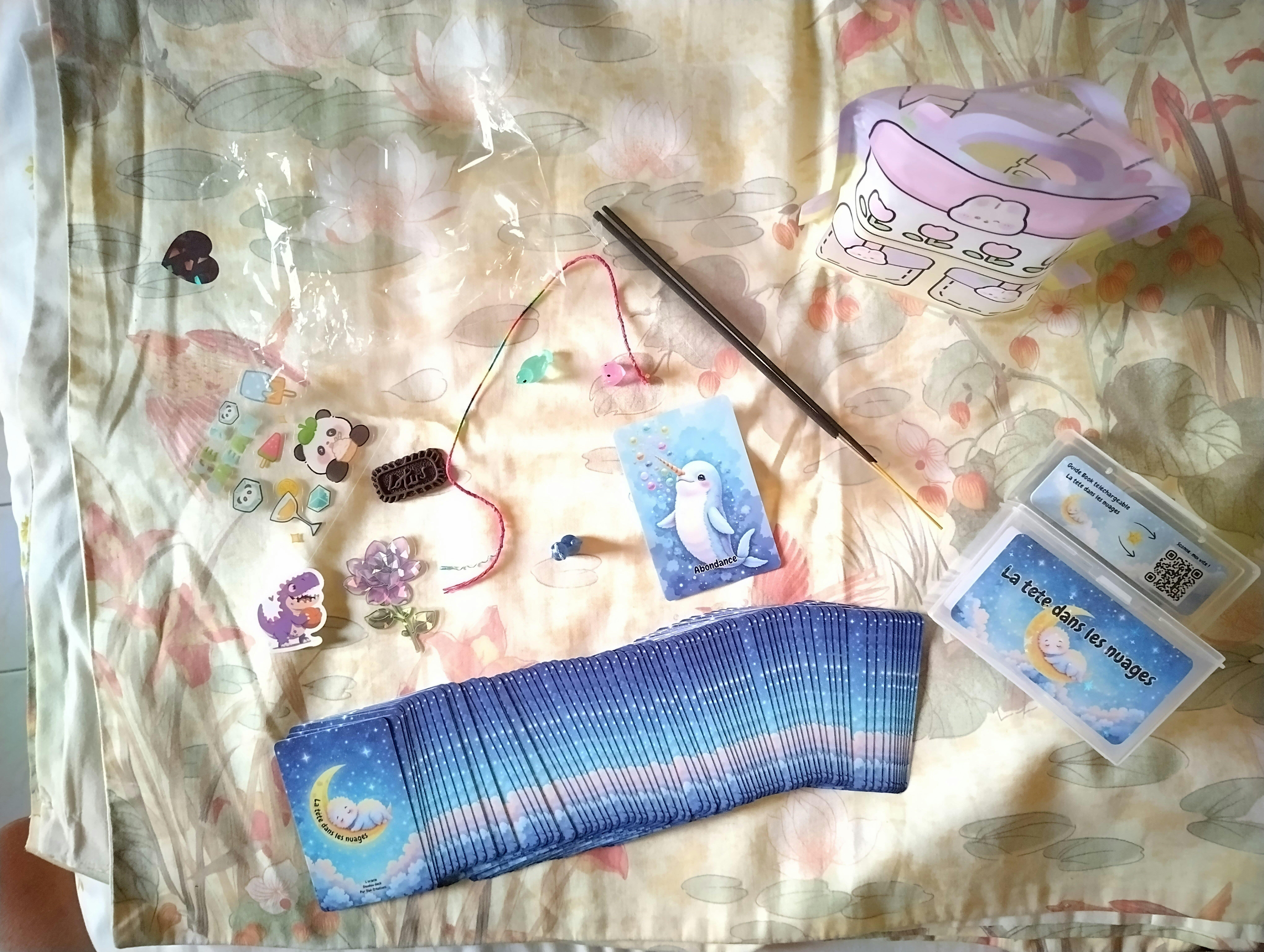 L’oracle la tête dans les nuages est un oracle divinatoire tout doux ! Ce Doudou deck sera un allié fidèle et pratique grâce à sa taille poker et sa finition en peau de pêche. Un guide PDF est même inclus, avec un QR code pour le téléchargement. Avec ses 78 cartes complètes, il te guidera avec l'aide de Monsieur Nuage, qui te révélera les prédictions de tes guides. Le QR code pour le guide gratuit est fourni avec ton achat.